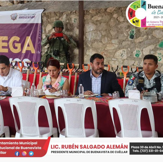 Acude Lic. Rubén Salgado Alemán a reunión semanal por "La Paz y el Bienestar" asisten Presidentes Municipales de la región norte, llevándose a cabo en Ixcateopan de Cuauhtémoc con la presencia de la C.C Naucelia Castillo Bautista, alcaldesa de ese municipio así cómo autoridades estatales, federales, SEDENA de la región norte, encabezados por el subdelegado federal el Maestro José Socorro Peralta Nava. .
